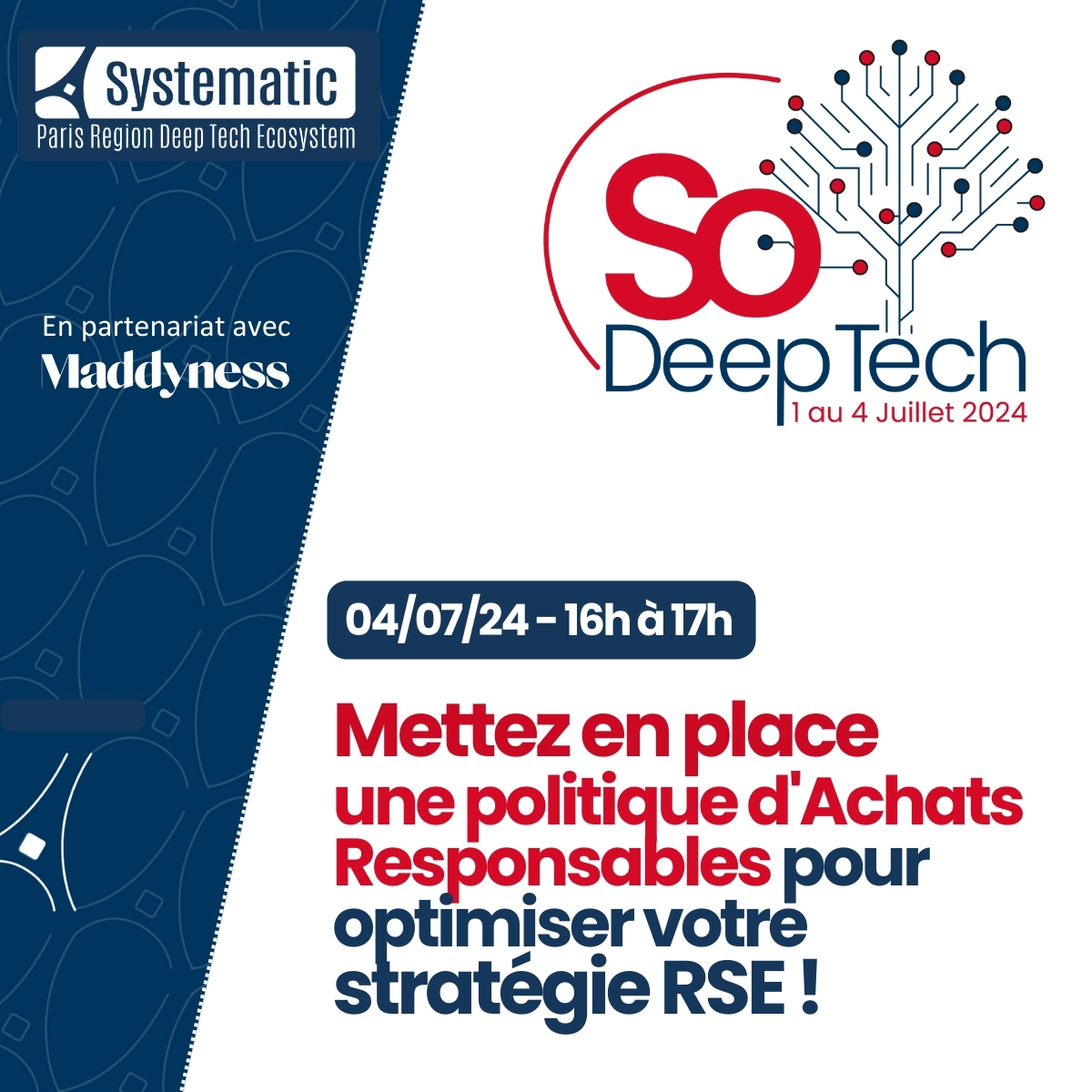 Ce webinar dédié aux Achats Responsables vous permettra donc de découvrir leur processus de mise en place, leurs avantages et bénéfices, mais aussi les obligations liées à cette démarche et sera illustrés de retours d’expérience concrets dans lesquels vous pourrez vous projeter.